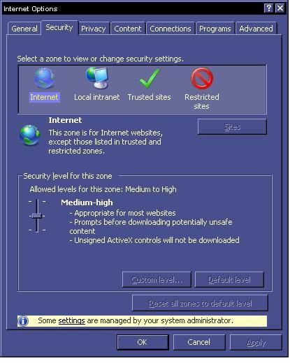 Note:    If Internet option is restricted as in picture below, please contact your system or domain administrator.