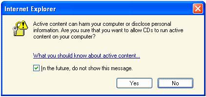 1.       The first time you run MI Disc View 3.1, you may get a message that Active Content can harm your computer. Place a check mark beside "In the future, do not show this message."  then click Yes. This will stop IE from re-prompting the user to enable Active Content every time MI Disc View 3.1 is launched.