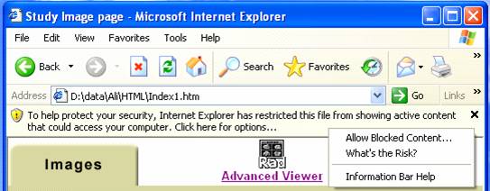 In addition to all IE settings from previous sections (Section 3.3.1 or section 3.3.2) another step is necessary to allow MI Disc View 3.1 in IE7 and IE6 with latest patches.